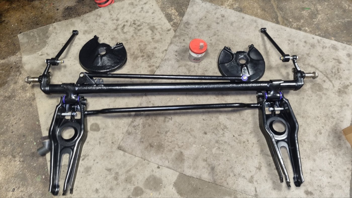 As I mostly work on British cars, I was impressed by the speed that the Skandix parts were delivered. It did not even 48 hours!!! Powder coating also usually takes a week or two. This evening I was pleasantly surprised that I got (almost) all parts back. Inserting the PU bushes is really easy – the few rubber version ones I had to buy (did not find PU versions for the torque rod and stabilizer) took a few minutes. There are a few M12 bolts missing I ordered from Frantos.com but they should arrive soon.