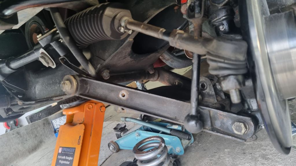 The test drive today was another surprise. The combination of a -correctly- installed castor correction kit, needle bearings in the stub axles and EZ PowerSteering make the steering too light and easy for my taste. Even with PowerSteering switched off – the MG reacts on the tiniest touch at the steering wheel. I need to check the wheel alignment – it could also be that Maggie does not have the correct tow-in alignment in the front right now. But this is a a task of part 2 when I will be starting with the rear axle.