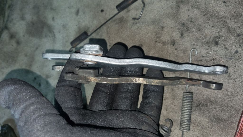 Back at the garage a few days later I took the newly overhauled rear brake assembly apart again. And for sure – the completely maxed-out new adjusters only spread out 44mm wide. The old ones, from Maggies original rear axle, extend to 50mm. And after some testing and measuring I determined that I need 45mm at least to get the hand brake adjusted correctly. The old adjusters need to be removed and will replace the new ones I bought. This was two weeks ago and I only had time to change one side so far.