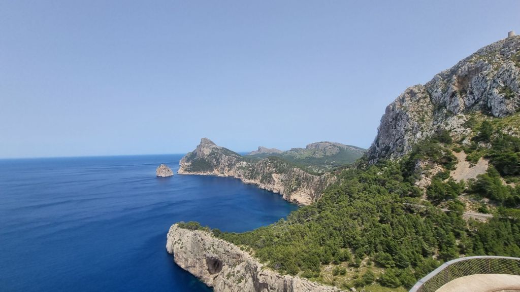 Doing the approx. 110km of the MA-10 – the main road from West to North – in one go might be possible. However, the travel time Google maps calculates is too optimistic. With other people on the street, tight turns and too many places worth taking a break it makes sense to break it apart into sections. First we did the west section from Sant Elm. The coffee break in Banyalbufar was great. While it is possible to drive down the steep single lane road to the beach (there is some limit parking down there) we opted against it. Instead we tried driving down to Port des Canoges – which was even more challenging. The single lane road is in a rough condition – after three serpentine curves in a row that I could not do in a single turn – we decided to not persue this challenge completely and headed down via the MA-1100 to Palma again.