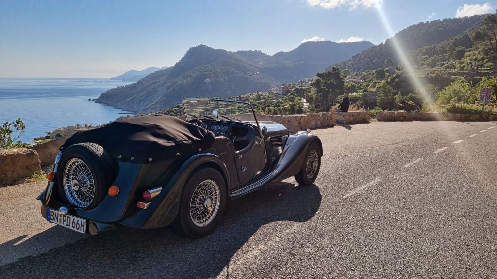 Mallorca is just an island – yet there are plenty of nice roads to explore. One important thing to consider though is the time of the year & day & hours you are taking a classic car out for a tour. Keep in mind that you share the road with many cyclists, locals, and other tourists – including hikers. The MA-10 from Andratx in the west to Pollença in the north can be considered mandatory if you plan a classic car tour. It is such an amazing road. I was lucky (and after the first tour mindful) that I choose times with little and sometimes no other traffic – otherwise this can be stressful. There are plenty of serpentine curves – most of them easily doable with a Morgan (as long as you drive carefully).