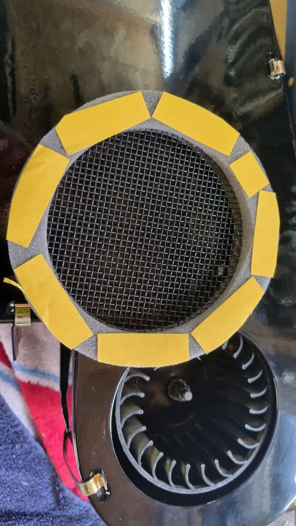 I found a thicker polyester felt that is rated up to 110Β°C and got a spray adhesive with the same heat resistance. This was applied to the flap. When writing this post I noticed that I made a small mistake when applying the new stickers – so it is wrong on the pictures – but will fix this shortly. The second heater box already has an uprated core – if I am satisfied with the box for Mildred, I will also add this to Maggie at some point. The third heater is complete as well – will most likely sell this on Kleinanzeigen.de