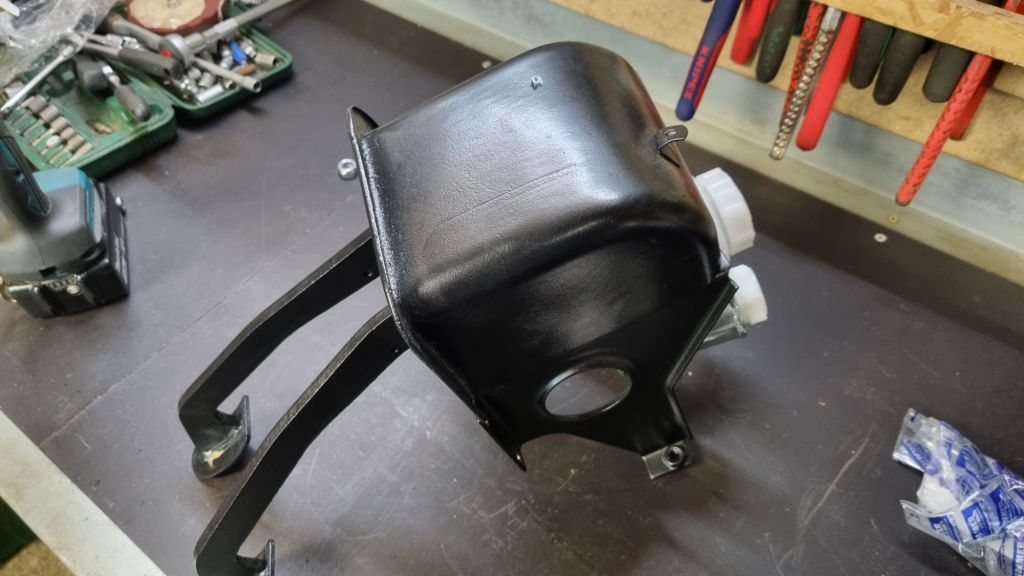 Next to the heater box in a MGB is the pedal box. And as new bushings and some other parts also arrived in September, I also assembled the pedal box. Both pedals have been welded, redrilled for clevis pin and powder-coated. One bronze outer bush needed to be replaced and reamed for the inner metal bush. Feels good to be able to tick off two items of the list.
