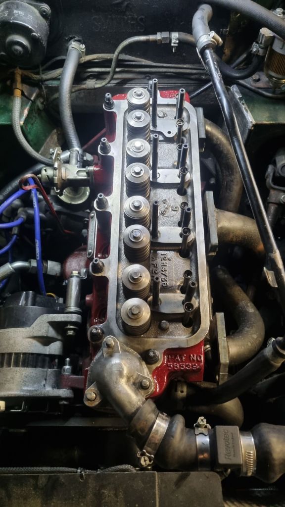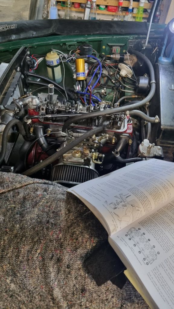 After this the engine started up right away. With the idle speed increased to 1500 RPM it warm up after a few minutes. It sounded ok – but not as good as before. The CSI Pro distributor has a Bluetooth interface and when the engine temperature reached 65° on the app (just about 80° water temperature) – I switched the car off. I decided to retorque the nuts to 50 ft-lb (68nm). A quarter turn and more was required on each nut – same when I check the 25ft-lb on the rockershaft nuts. Of course this meant that I need to check valve clearance again.