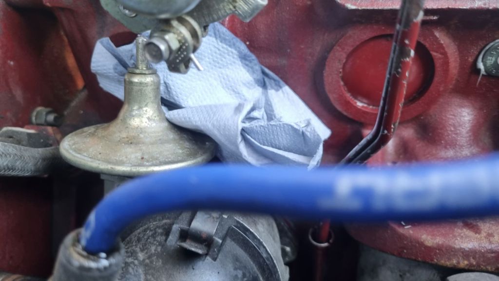 But when I wanted to finally start the engine nothing happened. Any then I noticed that I cannot hear the fuel pump when I turn the ignition key. The Facet fuel pump is mounted to the side of the right battery box. Fortunately, it has a connector which makes checking if it gets 12v easy. As this was working I checked the earth connection and surprisingly this was the fault. The cable runs back into the boot and the ground cable is connected somewhere in the middle of the back valance. Where exactly was a good question. It was easy to recognize that the ring terminal had broken off – most likely when got my hiking stuff out of the car. I crimped on a new connector – found a screw with good earth – this fixed the fuel pump issue.
