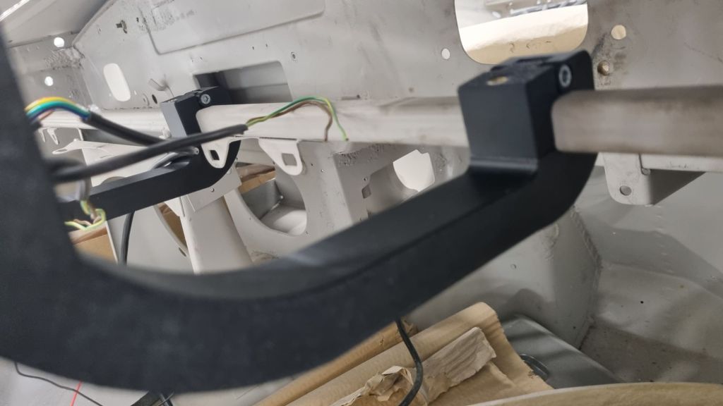 And while working on Mildred’s wiring and dashboard I got the idea for a really good mouting solution. The MGB has a ~20x20mm steel bar running behind the dashboard from left to right. The steering wheel bracket attaches to this and the center console support is welded to it. It is a few centimeter behind and upwards of the lower dashboard edge (at least on the early Chromebumper MGBs with metal dashboard). What if I could clamp a bracket to this bar which in turn holds the Rally dash? Well, it is not only for the MGB. A slightly different set of brackets for the Morgan is already in the work – another set for the Mini at least sketched on paper.