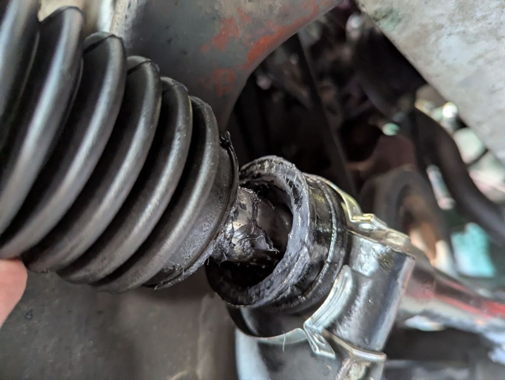 Having done quite a few services intervals on MGBs, Mini and Morgan over the last couple years now – the oil change, compression check and checking valce clearance and timing were all easy and quickky done. Greasing up suspension, hinges, universal joints and hand-brake cable is driven by muscle memory. As soon as I lifted the front of the car – I noticed that the one of rubber steering gaitor was completely torn. I have no idea when and how this happened. It is also hard to tell if this was caused by material weakness or a rough road (yes, Maggie saw a few gravel and forest roads last year).