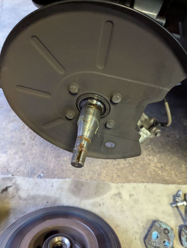 On the right side this was the case. I wondered if I could have installed the hub incorrectly. But even after swapping the two sides over – the problem remained. And while inspecting the brake disc – I saw that the Brembo disc installed just 3000km ago was blue on the inside. Something seriously went wrong. After digging thru forums and testing multiple different calipers, I came to the conclusion that this issue must derive from the stub axle rebuild. And sure enough – the same caliper is pretty much centered on the stub axle I have for Mildred.