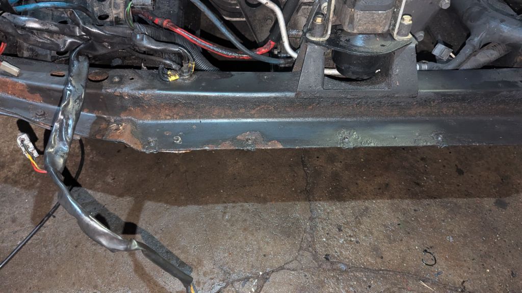 While standing in front of the car contemplating what to do now, I could not help but to stare at the rusty spots on the front cross-frame – which holds the grill, headlights and cooler. This just doesn’t look good and should be addressed. But in the end – this is my son’s car, so why should I…..