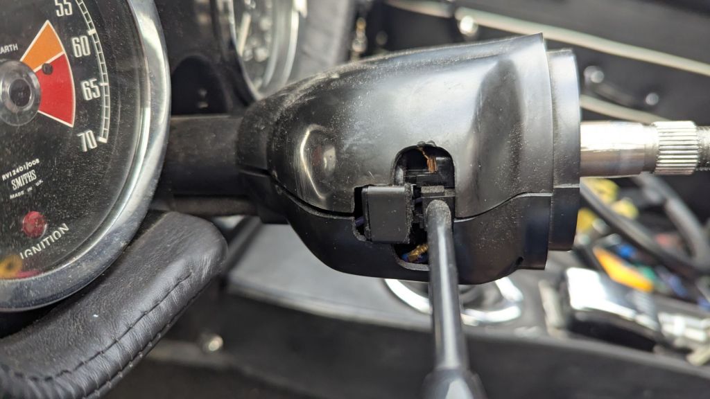 For daily use, but also for Endurance Rallyes like the Lejog, having a wiper stalk control mounted to the steering column is beneficial. The Lucas toggle switch on the dashboard of the 1967 MGB GT might be period correct – but annoying if you have to use it often. Having Intermittent wiper functions is also high on my wish-list. For this I tested standard relay 19 back in 2023, which I didn’t like. From the Saab 900 I borrowed a Standard Bosch relay 99 (which is also still available on AutoDoc). This worked but raised the question on how to control it? The idea to use the Rover 200 column stalks and part of their wiring (the same or very similar ones to the MG RV8) came to my mind. A used pair I got the junkyard quickly made clear that this is not very practical. Size and looks didn’t fit. And to be honest – wiring it up turned out to be more complex. Additionally, while playing around with this, I also found a great alternative for the Intermittent controls in Konrad Stucki’s WIM2405 Modul. More on this later.