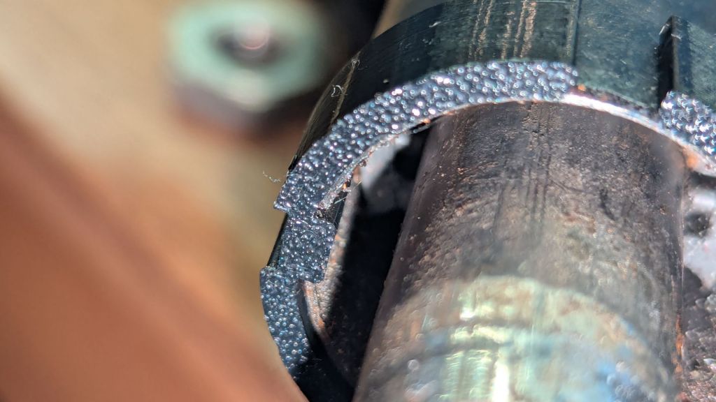 So, next we need to look at the different MGB steering columns and see how to make this fit. An excellent source of information is MGB-stuff.org.uk. It helped me to understand the Type3 and 4 differences for indicator cancellation – this will be important later. But the site does not mention the outer diameter of the different columns. As far as I could research it there are at least five(+2) different types. In my spare part collection I have three different types. The late collapsible 4cyl model has the part number BHH1856. The MGB V8 had a similar model BHH1596 – which is a bit shorter with 720mm total length. The newer AAAU4995 stalk mounts to those and the diameter (at the point where the stalk is mounted is about 35mm (or 1-3/8inch)