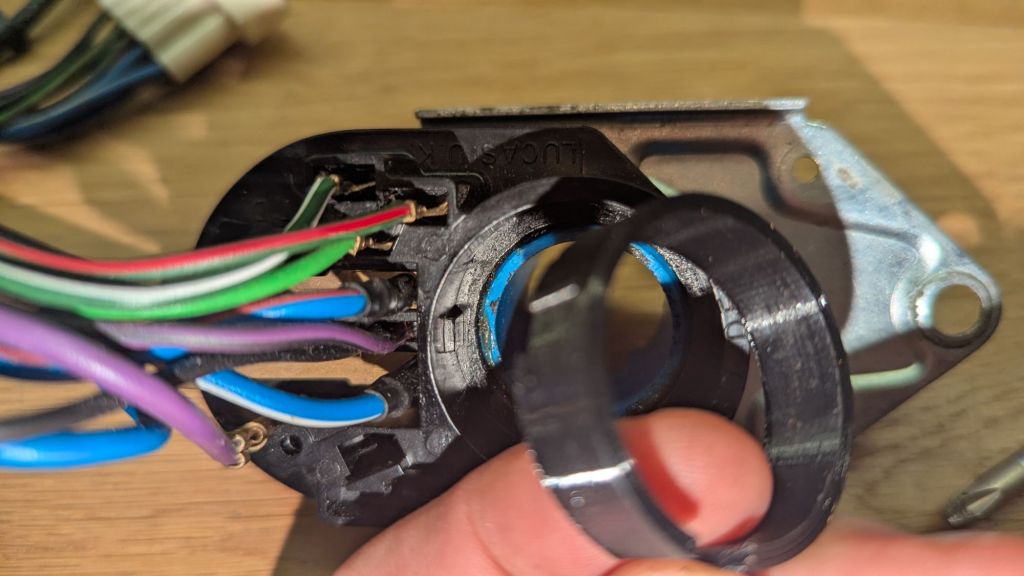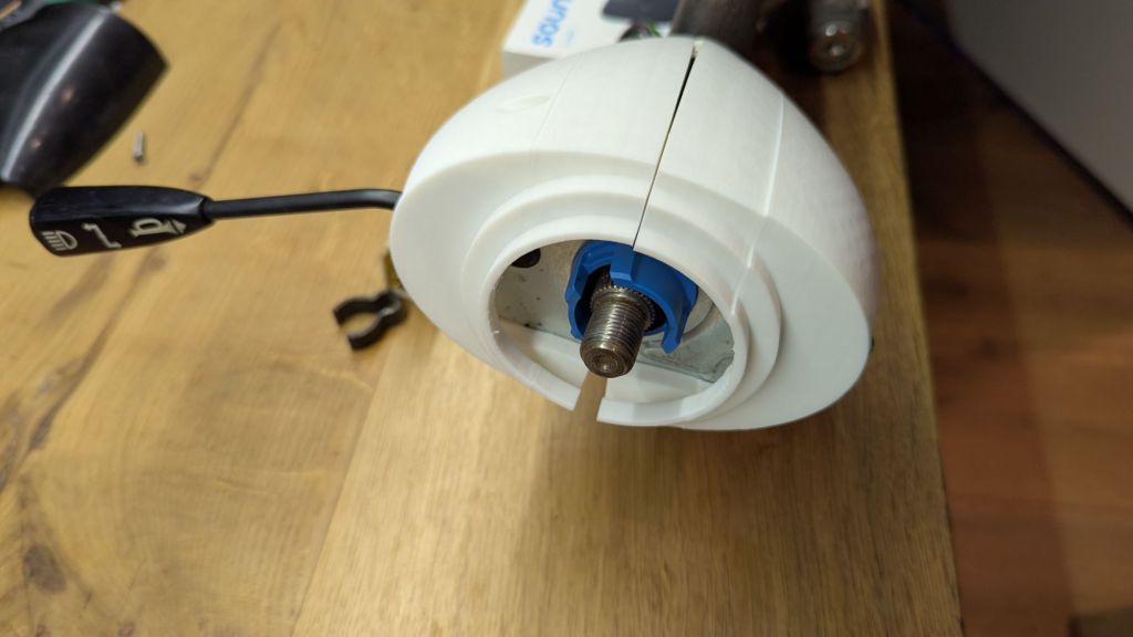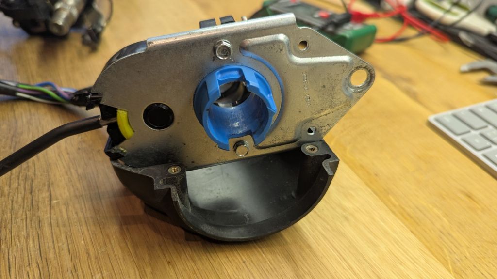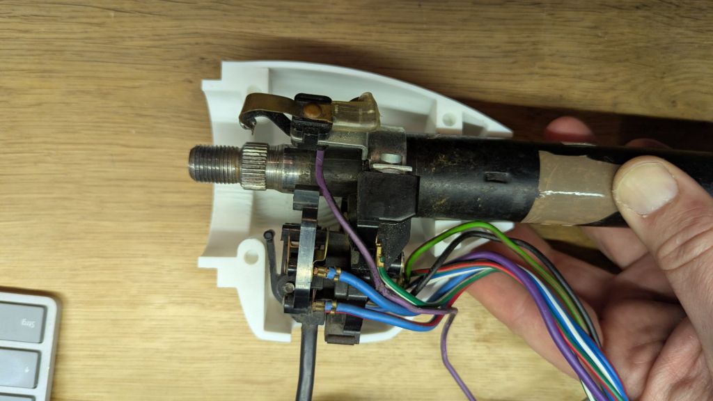 Bottom line: the late AAU4491 indicator/wiper will not fit the early steering column. But this is a 10 minute fix with a 3D printer. I quickly designed a spacing adaptor in Freecad, printed it in PETG and was able to attach it to both – the BHH515 as well as the EZPowersteering on my 1967 MGB GT.